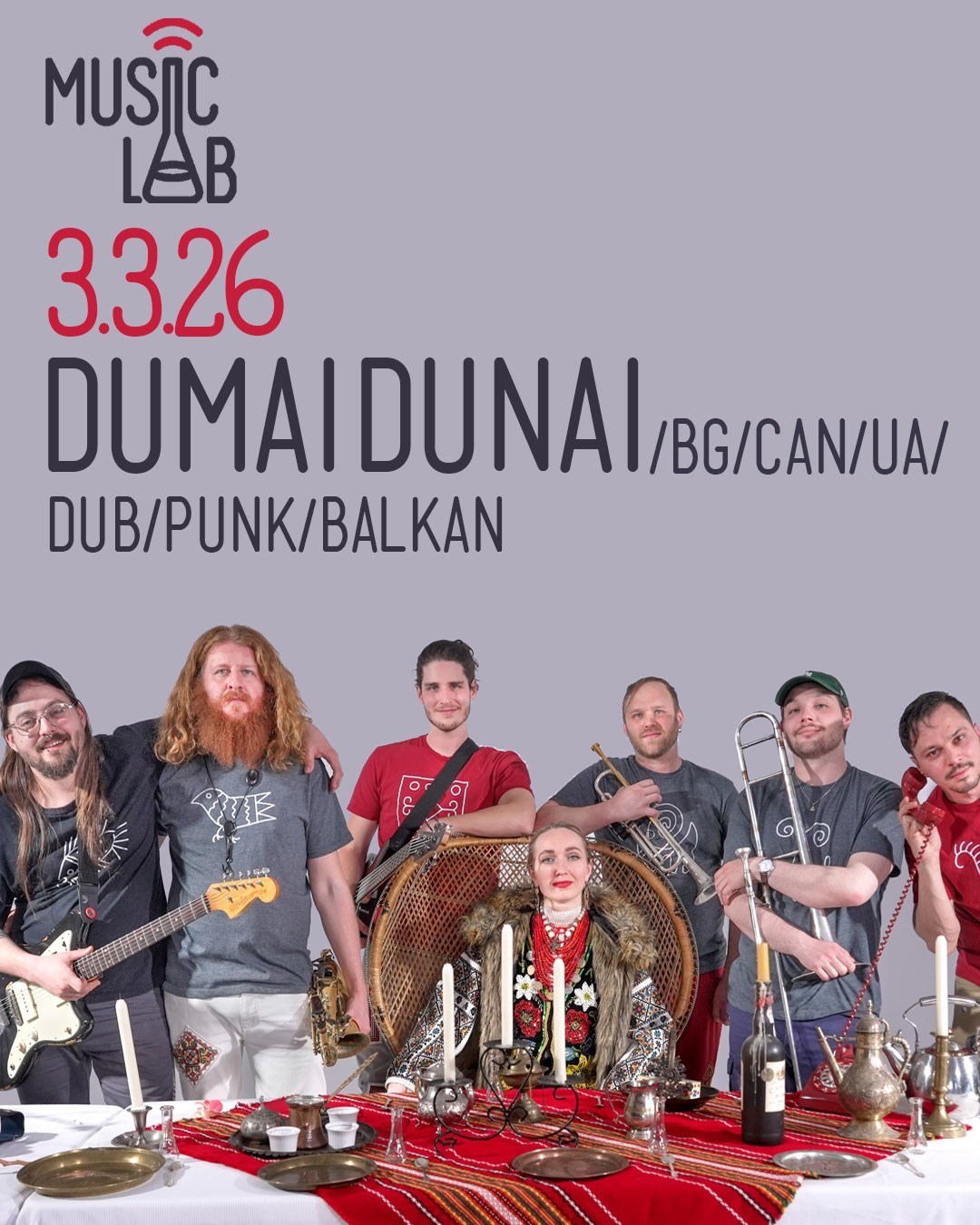 Slovanští dub-punkeři Dumai Dunai kombinují hluboké groovy dubu s energií punk rocku, syrovou extází balkánských dechových kapel a radostmi i strastmi ukrajinské vesnické polyfonie, existující někde mezi undergroundovou scénou svého milovaného Montrealu a horami a údolími své slovanské domoviny. Skvělá muzika pro fanoušky Dubioza Kolektiv nebo Gogol Bordello.