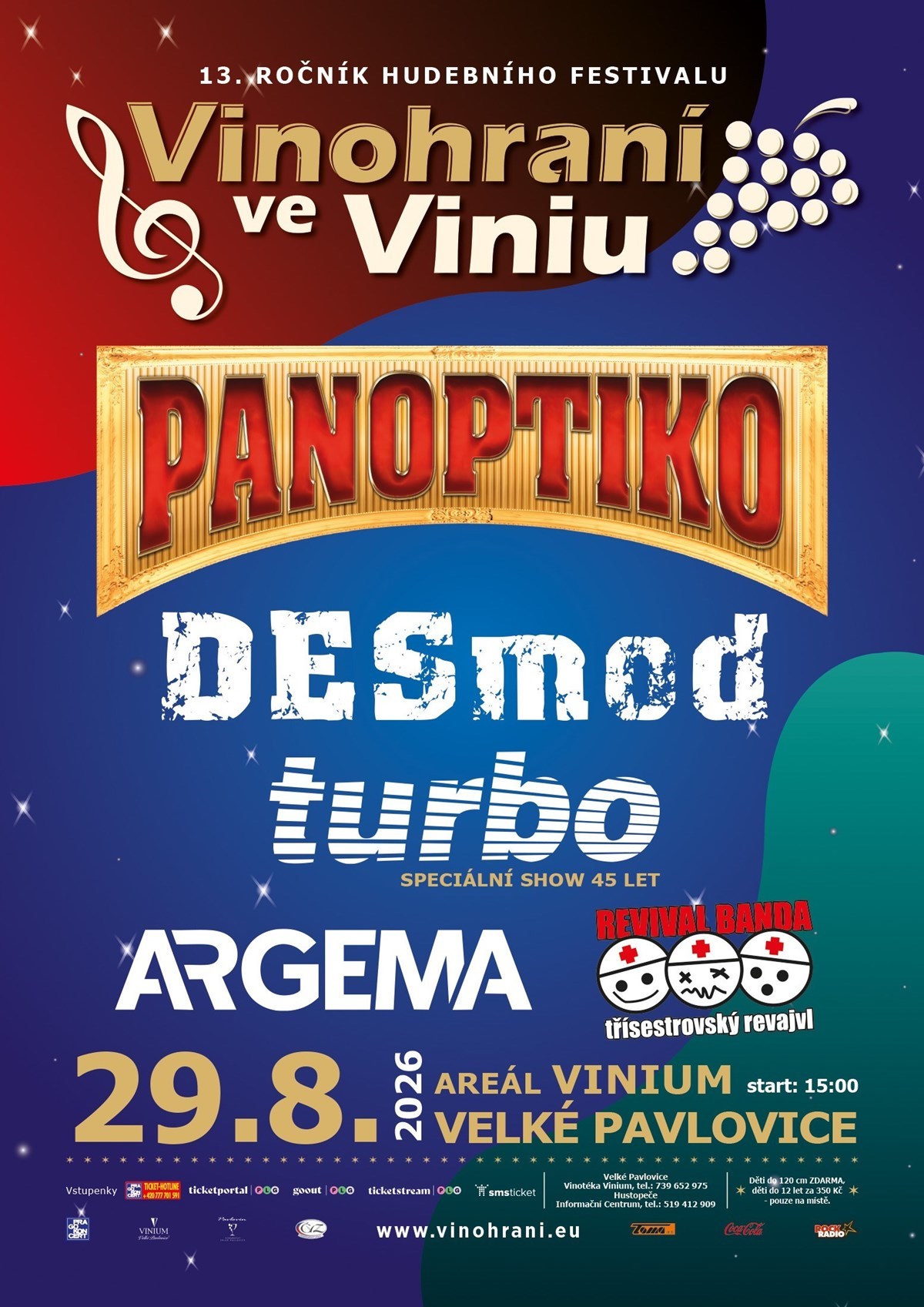 13. ročník Vinohraní ve Viniu vás zve na nezapomenutelnou sobotu. Vinařský areál Vinium ve Velkých Pavlovicích se na konci srpna znovu promění v místo, kde se potkává hudba, atmosféra tradice a energie tisíců fanoušků. Festival vstupuje do třináctého ročníku a dává jasně najevo, že i letos se jede naplno.