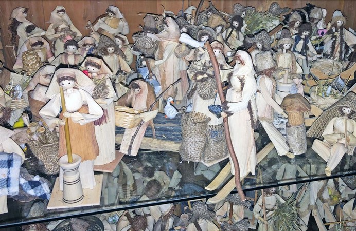 Ano, například slámu, piliny, trávy, kúru… snažíme se používat co nejvíc věcí z přírody. Vidíte, že i betlémy jsou každý jiný, ty mi vyrábí manžel. Každý betlém i postavička jsou originál. V betlému není jen svatá rodina, vyrábím také postavičky představující řemesla. Jsou fi gurky, na které použiji kousek látky, aby byla oblečená. Kovář má v ručičce malou podkovičku, muzikanti mají různé hudební nástroje… k tomu se snažím přizpůsobovat i materiál, který na postavičky používám.