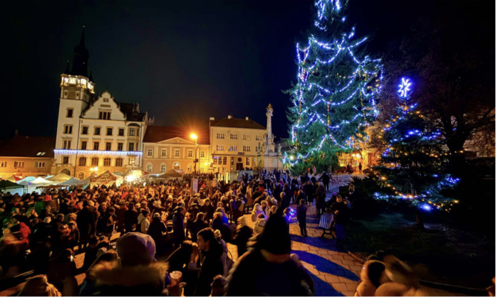 Součástí adventní výzdoby se stal i nový přírůstek do dřevěného betlému, který město postupně rozšiřuje už třetím rokem. Letos přibyla postavička pasáčka s ovečkami. S příchodem večera se světla na náměstí dočista promísila s horkým dechem davu.