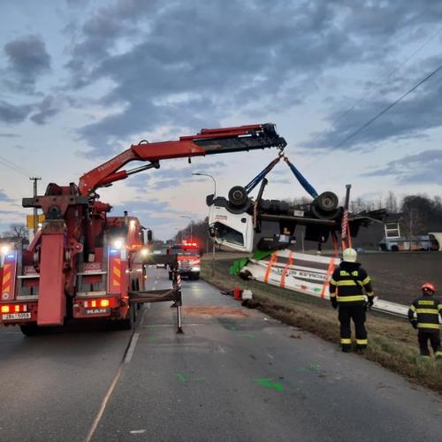 V době nehody byla plošina v pracovní poloze. Jeden z pracovníků se nacházel ve zvednutém koši, druhý stál u vozidla a plošinu obsluhoval. Přestože bylo pracovní místo řádně označeno, došlo k nárazu, kdy po střetu skončilo auto s plošinou převrácené mimo vozovku, několik metrů pod úrovní silnice.