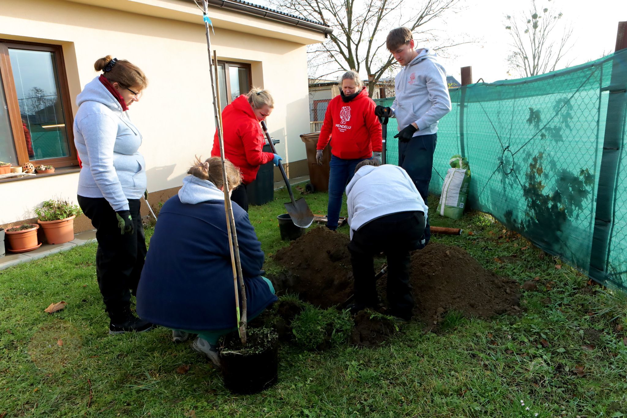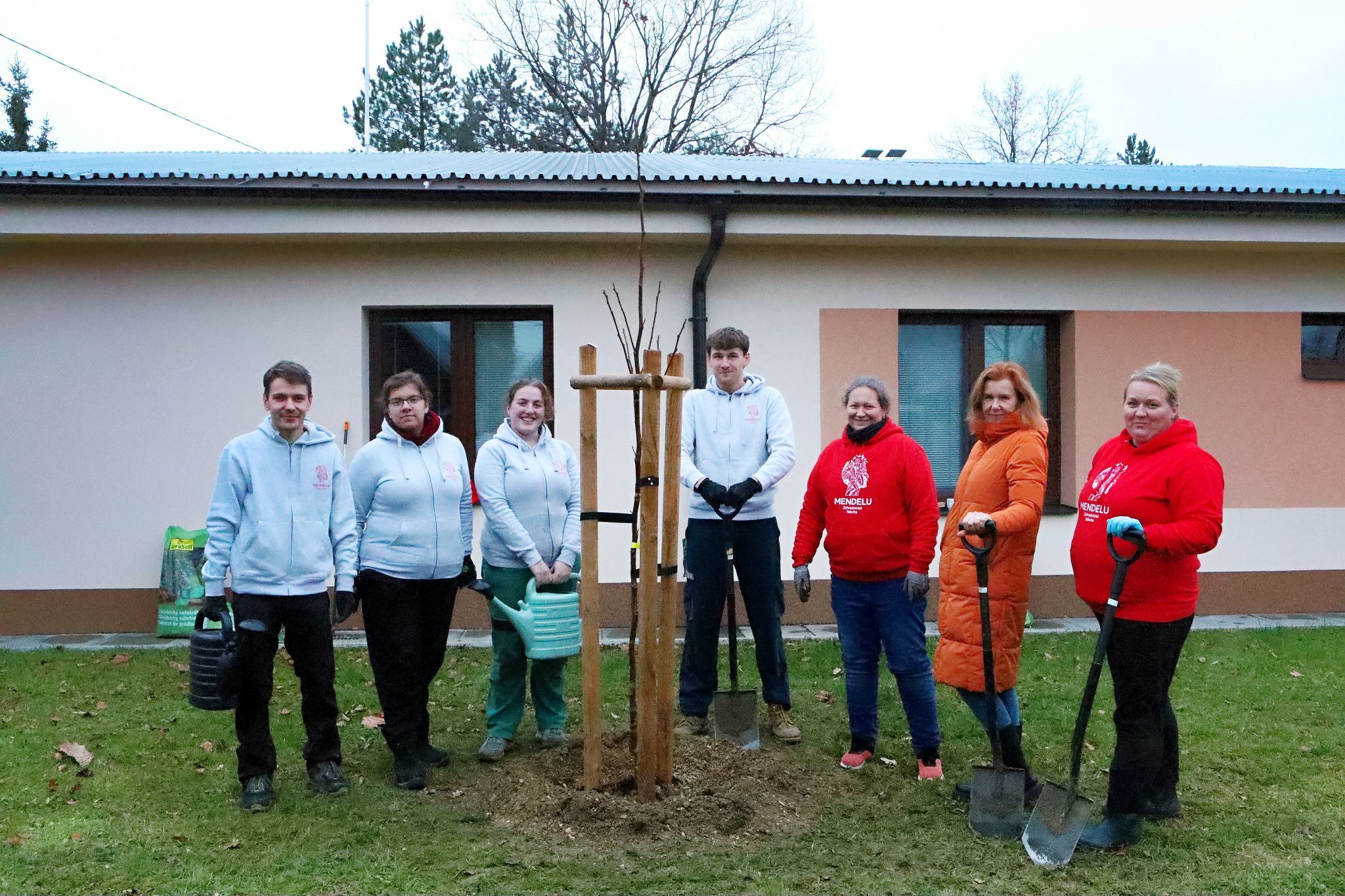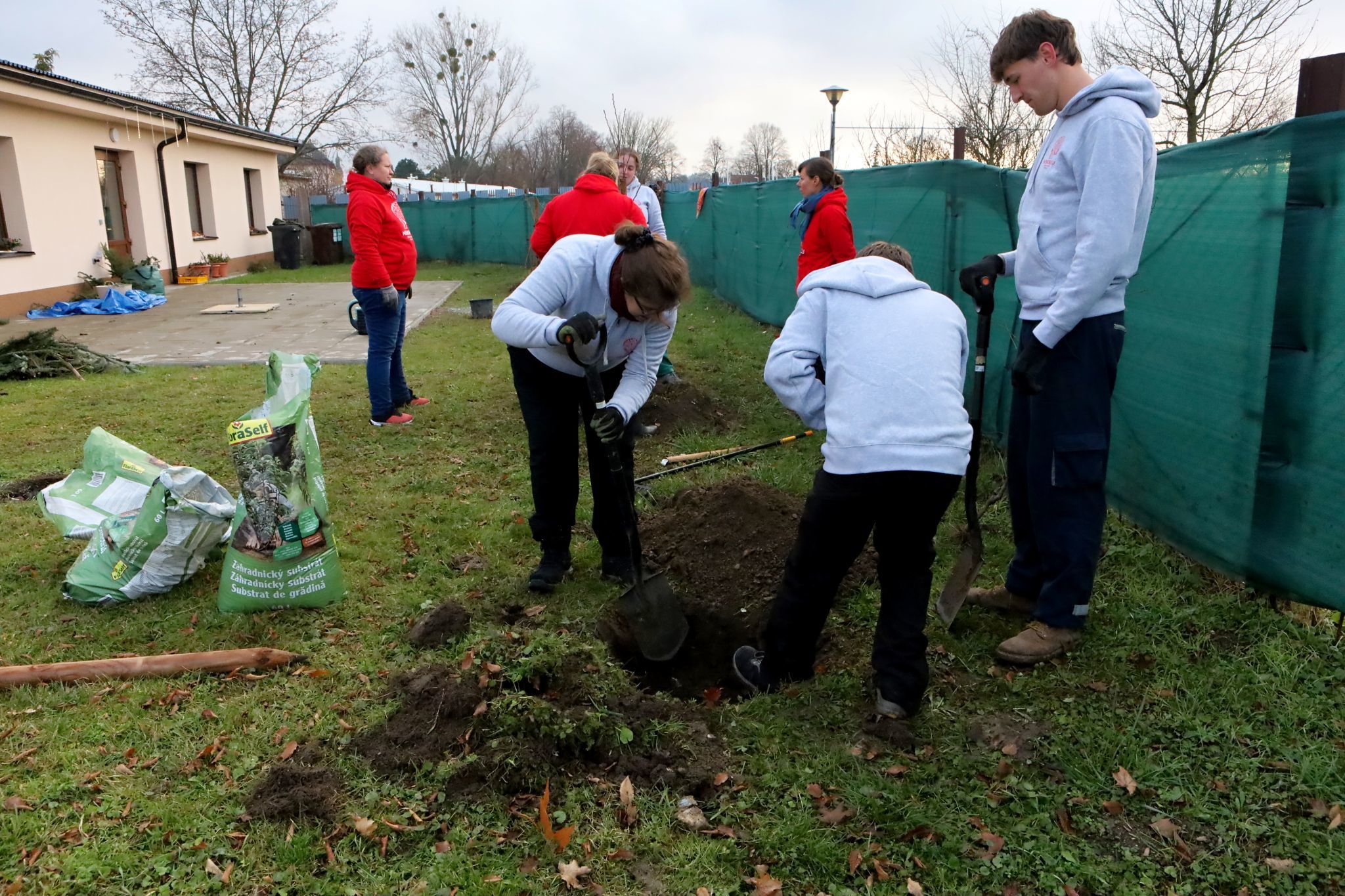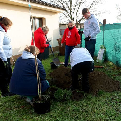Další péče o vysazené stromy nyní přechází na klienty a zaměstnance centra. Zahrada tak začne plnit svůj terapeutický rozměr už od samotného počátku.