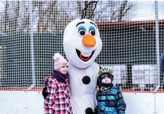 Rodiny s dětmi ze širokého okolí se tak v rytmu dětských písní mohly těšit na pohádkové postavy, a to vlka z Jen počkej zajíci, sněhuláka Oláfka z Ledovéhokrálovství, lvaAlexe ze Lvího krále a sněžného muže, se kterými se děti mohly projíždět po ledové ploše a vyfotit se s nimi. Děti také soutěžily o dárky jak v disciplíně o nejlepšího tanečníka, tak i ve zpívání. I přes dlouhodobou absenci sněhu v našich podmínkách na kluzišti sněžilo, a to z výrobníků sněhu a děti se koulovaly za pomoci umělých koulí. Silničáři naštěstí na sněhovou kalamitu v Rajhradě nedorazili.